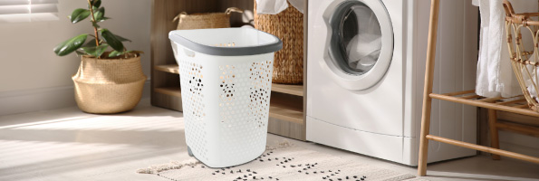 LAUNDRY BASKET WITH CASTERS PLIM BK-137-3 WHITE/GR...
