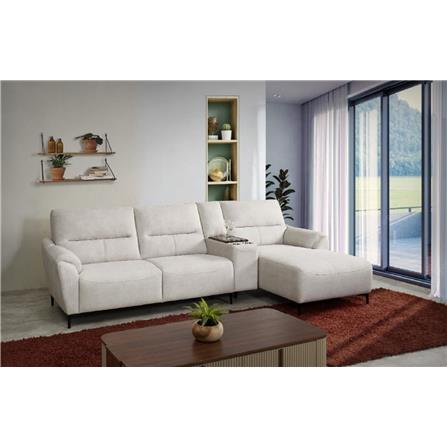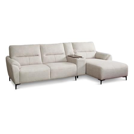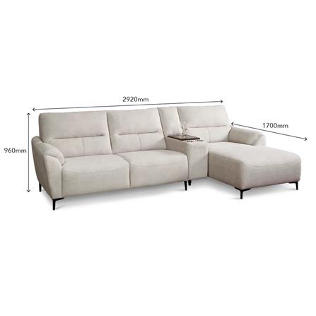 The 3 Seater L-Shape Sofa is a well-constructed and stylish furniture piece, featuring a sturdy wood frame, comfortable High Density Foam padding with Zigzag and Pocket Springs, and water-repellent, anti-scratch fabric upholstery. Its Powder Coated Metal legs provide stability and a modern aesthetic. Notably, the sofa includes two cup holders for convenience and a soft-close storage box for discreet and accessible item storage. This sofa combines durability, comfort, and practicality, making it an excellent addition to any living space.