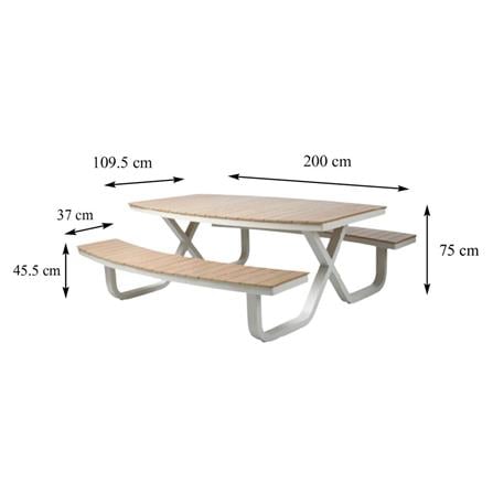 Enjoy your leisure time with this patio bench set from BENETTA. The patio set is constructed of quality aluminum for durability and excellent weight bearing. The top table is made of light brown plastwood for humidity resistance and excellent weight bearing. This patio set is perfect for various styles of decoration.