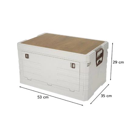 Keep your place neat and clean with this foldable storage box in GLAM series which is suitable for both indoor and outdoor use. Coming with a thick plastic profile and a wood top, the stackable box ensures durability, stability, and space-saving placement. Apart from featuring a front door for convenient access, it is also easily foldable for multipurpose utilization such as camping or shopping.