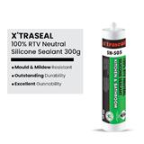 X'traseal SN-505 Kitchen & Bathroom Sealant 300g, Sealant is a single component 100% RTV. Silicone sealant with excellent anti fungal properties. It resists mildew and suitable for many common area where under high humidity and temperature conditions may be encountered. It will bond to form a durable, flexible, waterproof  seal on most building materials.