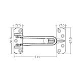 This swing door guard is designed to increase peace of mind when answering by allowing inswing door to be partially opened for viewing, while preventing intruders from pushing their way through. The product is great for adding to any combination of door locks to provide another layer of security against outside intrusions.