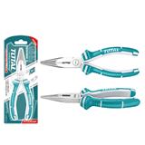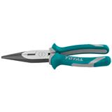 Long nose pliers from TOTAL are an essential hand tool designed for gripping, holding, bending, or cutting work pieces. This handy tool is specifically utilized upon various applications, such as removing fasteners, holding work pieces in tight spaces, and cutting thin wires. Made of high-quality steel, the pliers gives durability you need to tackle the jobs. Their grips are ergonomically designed for firm holding and ease of use. This tool is a solution to your technical projects and DIYs.