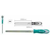 A file card, which is a brush with metal bristles, is used to clean the file.