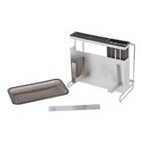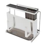 Comes with a cutlery holder and a holder for storing a cutting board or pot lid