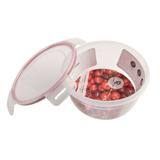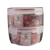 Round-shaped vacuum food container from Double Lock comes with a lid for leakage prevention.