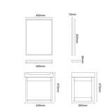 • Including Mirror 400 x 500mm (WxH), Shelf, Pop Up Waste and Steel Tap.