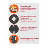 Enjoy healthier fried food that’s crispy on the outside and tender on the inside with up to 90% less fat.The features of air fryer from KHIND is with non-stick detachable frying basket and it have auto shutdown heater switch.