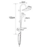 This shower column set consist of a square shower head, hand shower set and soap tray.