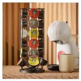 As it is made from quality powder-coated steel, this simple and elegant rotatable coffee capsule holder is an excellent way to store your Dolce Gusto coffee capsule. Apart from its easily accessible rotating design, this product comes with the perfect size to put on your kitchen counter. The clean design not only complements colorful package of your coffee pods, but also effortlessly matches both modern and traditional kitchens. This great accessory is the ideal solution to keep your delicious capsules neatly organized.
