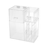 With this makeup and jewelry organizer, your cosmetics and jewelry will be completely organized and easily accessible. Thanks to the quality clear plastic material, the item is great for using on your vanity, dressing table, or desk, to provide quick and easy access to your makeup and accessories. Plus, the lid also keeps the inside items out of dust and dirt. Featuring a stylish look that nicely blends into any home decor, this organizer is a functional way to store and display yours earrings, skincare, makeup, makeup tools, and more in style!