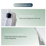 • This multifunction storage box features latching lids that allow easy and stable stacking.