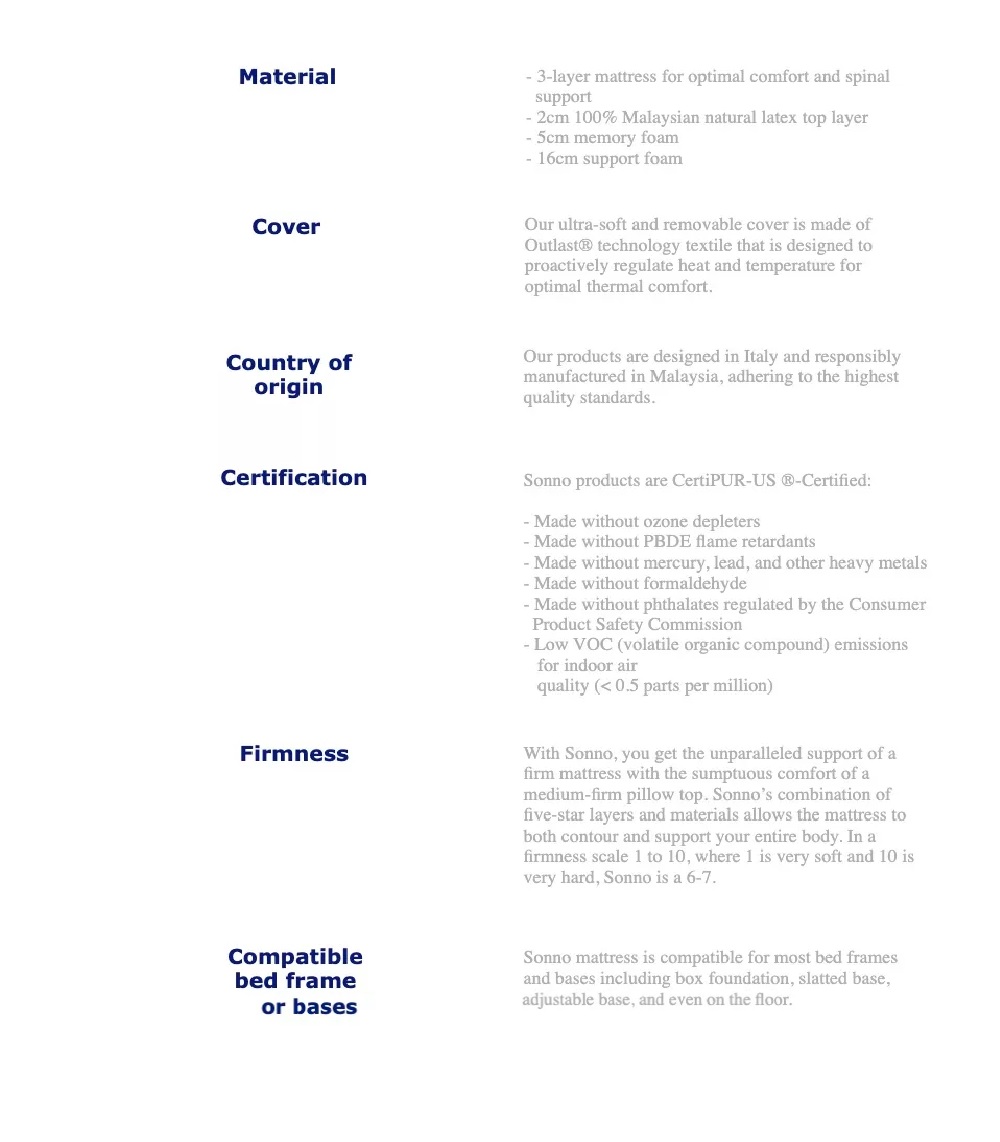 SONNO ORIGINAL MATTRESS KING XL WHITE/GREY