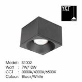 The YETPLUS Surface Downlight LED S1002 features a square black design, providing a modern and stylish look that complements contemporary interiors.