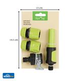 This set of a garden hose nozzle and connectors from SPRING includes a nozzle, a tap connector, hose connectors for you to utilize instantly. Mainly made of PP and ABS, excellent rigidity and surrounding condition resistance are ensured. The TRP grip of the promotes ergonomic convenience. Thanks to the compactness and easy installation, time and effort in working can be saved.