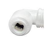 This MTP elbow connector from MECO is made of high-quality plastic for durability. This connector comes with 3-way water inlet-outlet which is suitable for using with water filer thread size of 1/4” Plus, the speed fit connector design is easy to connect to water filter tubing. Food Grade material for your safety.