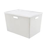 Keep your general items in well-organized manner with this quality plastic storage box which is stackable as its lid perfectly fits the base of the upper box. Apart from rectangular design to place in any corners, this lightweight box also includes hand hole on each side for convenient portability and comes in a perfect size for generously storing your stuff.
