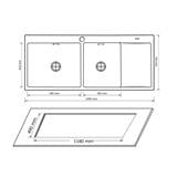 Stylish square sink features 2 bowls with a depth of 22cm for convenient use.
