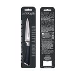 Fukuro Chef Series knives are made of high quality AISI 420 stainless steels. Its high chromium stainless steel built-up provides excellent strength for cutting and good corrosion resistance. Fukuro knives are made of full forged stainless steel with its handle wrapped with thermoplastic rubber, which is BPA free and safe. The shape of the handle provides comfortable grip. Fukuro is also attentive to the weight of our knives so that you always have enough control yet does not cause unnecessary fatigue. Fukuro Utility Knife is a great knife for chopping a wide variety of food such as vegetables, potato, shallot, and fruits. The utility knife allows more precise cutting when working with smaller food.