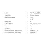 The RUBINE Domino Ceramic Hob combines efficient cooking with key safety features and modern design. It provides energy power of 1.2 kW for the front burner and 1.8 kW for the rear burner. The hob features a durable Vitro-Ceramic Glass Surface, complemented by an Aluminium Frame for added stability and a sleek appearance.