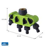 Connect with a water hose to get up to 4 separated water ways with this tap connector. The product is made of high-quality materials, making it highly durable for outdoor use. The connector features an external thread for secure locking without leakage. 4 built-in valves offer water dispensation easy, making it ideal for plant watering, general cleaning, etc.