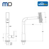 The TF-SPNL-MG - Pillar Kitchen Sink Tap is a durable and stylish kitchen faucet with a wide body, metal gun color finish, and stainless steel construction. Featuring a heavy-duty cartridge and a 3-way adjustable spray head, it offers versatile functionality and reliable performance for various kitchen tasks. Designed for both residential and commercial use, this tap ensures long-lasting durability and easy maintenance.