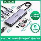 UGREEN USB-C TO 2*HDMI 4K@60HZ+1*USB-A 3.0+1*USB-C 3.0+2*USB-A 2.0+SD/TF+RJ45+PD