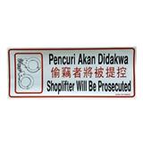 SHIN YIH SIGNAGE 5"X12" SW407 PENCURI AKAN DIDAKWA/SHOPLIFTER WILL BE PROSECUTED