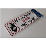 The "PETI KECEMASAN/FIRST AID KIT" stickers are designed to clearly indicate the location of first aid kits, ensuring they can be accessed swiftly in case of an emergency.