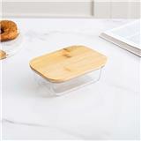 COSSY PLUS BOROSILICATE GLASS STORAGE CONTAINER 370ML WITH BAMBOO LID- RECTANGULAR