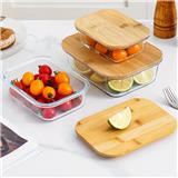 COSSY PLUS BOROSILICATE GLASS STORAGE CONTAINER 640ML WITH BAMBOO LID -RECTANGULAR