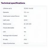 • It provides a Cool White light at 4000K, offering a neutral, bright illumination.