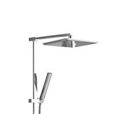 This wall-mounted shower mixer column set with a panel and button diverter from Johnson Suisse features a sleek chrome finish, a single lever mixer for temperature control, and a 2-way diverter for switching between a square showerhead and a handshower. It includes a 1.5-meter flexible hose for added convenience and requires a minimum water pressure of 1 bar for optimal performance, offering a functional and modern shower solution.