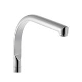 Curved swivel spout offers flexibility and ease of use in the kitchen sink.