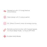 • It features a built-in DC motor, providing energy efficiency and quieter performance.