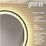 The Glorex LED Mirror A281 series features a round 60cm design with a 28mm black aluminium frame. Equipped with both front and back LED lighting, it provides optimal illumination for grooming, makeup, and general use. The mirror includes a hand motion sensor for touch-free control and offers 3 color-changing settings and dimming capabilities. Its energy-efficient LEDs and sleek design make it an excellent choice for bathrooms, dressing rooms, or salons, combining practicality with modern aesthetics.