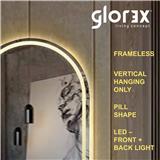 • The Glorex LED Frameless Touch Button Sensor Mirror Series features a distinctive pill shape, offering a sleek and modern design.