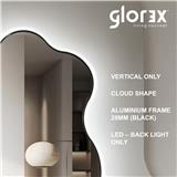 The Glorex LED Touch Button Sensor Mirror features a unique cloud-shaped design with a durable 28mm black aluminum frame. This vertical mirror offers soft LED backlighting, providing a gentle ambient glow ideal for makeup, skincare routines, or enhancing the ambiance of any room. The touch button sensor allows for convenient control of the lighting, and its modern aesthetic makes it a stylish addition to any bathroom, bedroom, or living space. Combining functionality with a playful design, it offers both practicality and a decorative touch to your home.