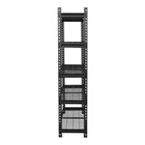 • Its construction and the steel rack shelves offer strength and stability, making it able to hold numerous items.