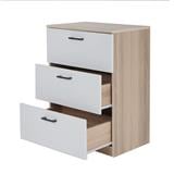 The chest of 3 drawers is equipped with plastic handles to offer ease of use and ideal for keeping your items neatly stored.