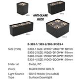 The Bright Objectives Surface Eyeball B303-2 GU10 Black Rose Gold Surface Downlight with 2 Bulbs combines a luxurious black and rose gold design with the versatility of two adjustable eyeballs, offering tailored directional lighting. Ideal for both residential and commercial spaces, this fixture provides stylish and energy-efficient illumination, with easy installation and minimal maintenance required. Perfect for accent and general lighting, it enhances the ambiance of any room or establishment.