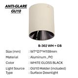 The Bright Objectives Surface Eyeball B302 GU10 White Gloss Black Downlight offers a sleek, modern design with a white gloss and black finish, making it an ideal choice for both residential and commercial spaces. Its adjustable eyeball allows for directional lighting, providing focused illumination. Easy to install and maintain, this energy-efficient fixture is perfect for accent and general lighting, combining both style and functionality for a variety of lighting needs.