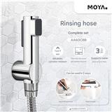 The MOYA  AA60CBB Chrome Rinsing Spray Set is a durable and user-friendly bidet spray, made from high-quality ABS plastic with a corrosion-resistant chrome finish. Designed for 2-way operation with an easy-to-use trigger, it delivers a gentle and efficient water spray, ideal for personal hygiene and bathroom cleaning. Featuring a stainless steel-wrapped EPDM rubber hose, it ensures flexibility, kink resistance, and long-lasting performance, making it a perfect addition to any modern bathroom setup.