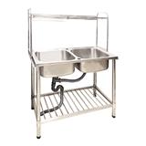 Freestanding kitchen sink is constructed of 201 stainless steel with a thickness of 0.8mm and features two 22cm deep bowls for accommodating plenty of tableware.