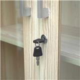 • Stylish wood-framed clear glass doors make decorative objects and displaying items clearly visible.