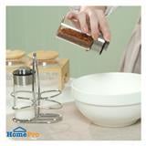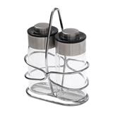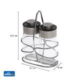 Make your favorite dishes more flavourful with this condiment holder set, including 2 condiment jars. The product allows you to store various seasonings or spices such as sugar, salt, pepper, and powdered pepper conveniently as desired. It is crafted from soda-lime glass and comes with a two-sided lid for greater control over the amount of seasoning. Plus, a stainless steel frame is included to keep the condiment jars in place and makes them easier to move or relocate.