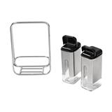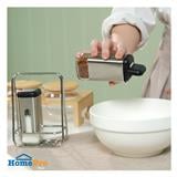 Make your favorite dishes more flavourful with this condiment holder set, including 2 condiment jars. The product allows you to store various seasonings or spices such as sugar, salt, pepper, and powdered pepper conveniently as desired. It is crafted from soda-lime glass and comes with a two-sided lid for greater control over the amount of seasoning. Plus, a stainless steel frame is included to keep the condiment jars in place and makes them easier to move or relocate.