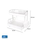 Organize your kitchen with this 2-tier dish drainer from KECH. The product is made of quality ABS and stainless steel for durability and excellent weight bearing. Plus, it is equipped with a drainboard to offer fast drying and prevent musty smell. It can be used to dry and store plates, bowls and glasses in different shapes, offering convenient use.