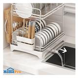 2-Tier design comes with a drip tray and a cutlery holder to keep your kitchen organized and save more space.