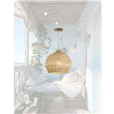 Handwoven bamboo shade creates soft, ambient lighting perfect for cozy interiors.